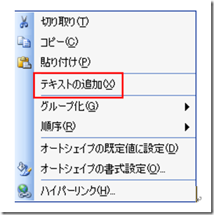 オートシェイプを選択して右クリック、「テキストの追加」より行う。